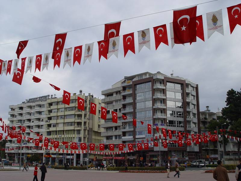 A tér fellobogózva
