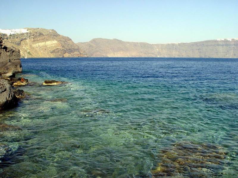 A Théra felrobbanása előtt a kaldera ezen a részén állhatott az a vulkáni kúp, amely beomlott