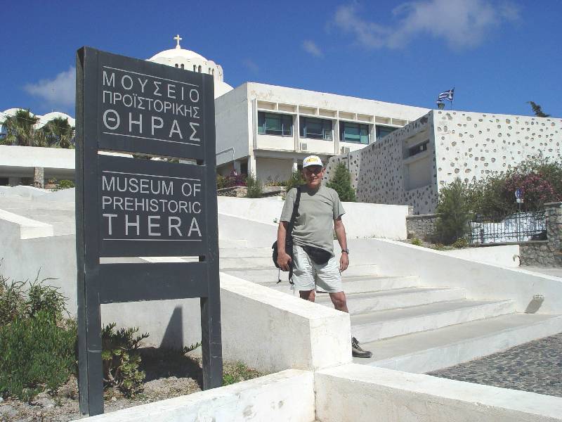A Museum Of Prehistoric Thera bejárata előtt állok Firában (FMPT, fotó Kalicz