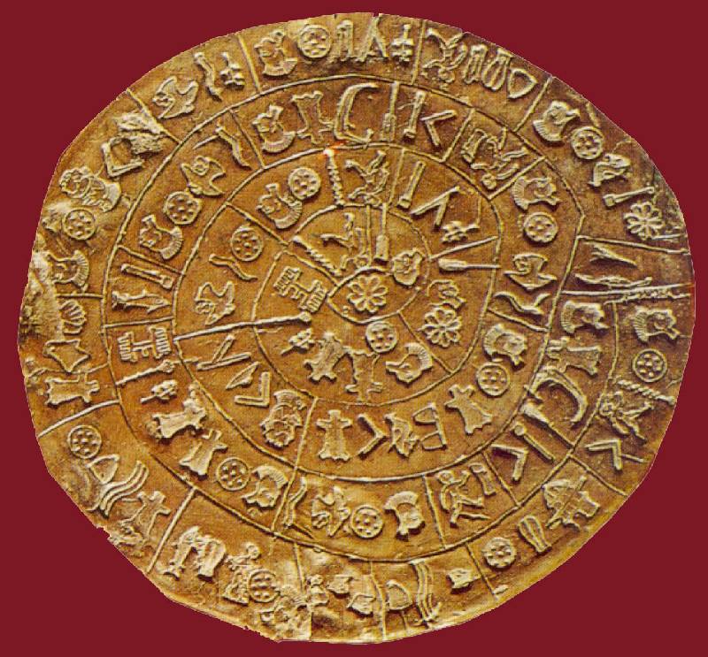 Phaisztoszi korong másik oldala. Feltételezik, hogy az első „nyomtatott” írás minden