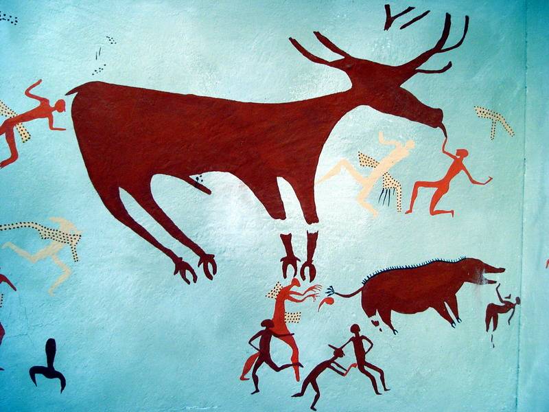 Kultikus jelenet: a szarvasbika két mellső lábát elvágták, a vadász az állat nyelvét fogja