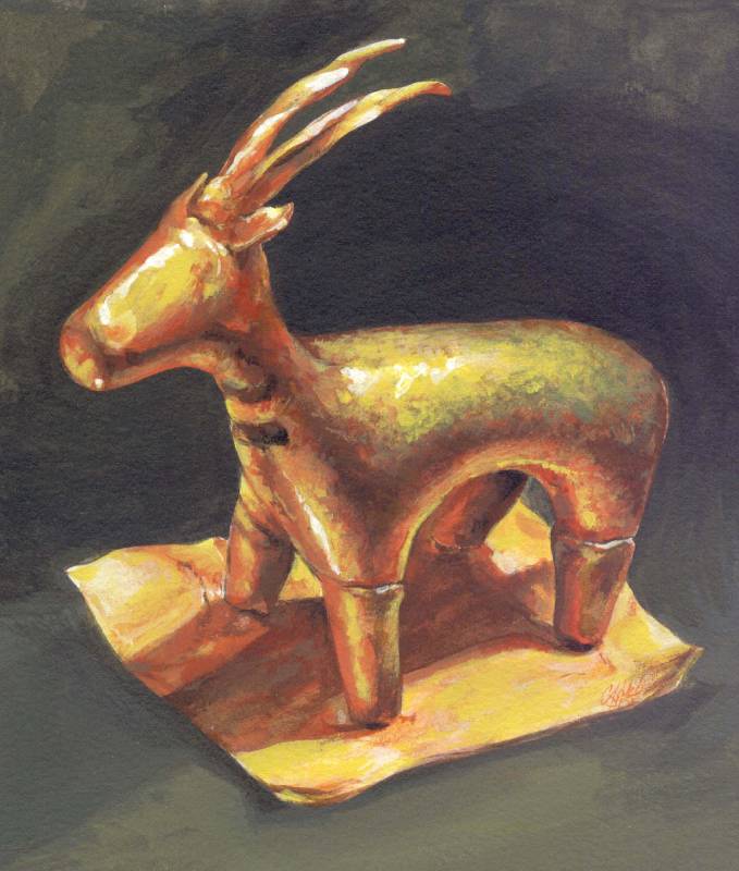 Az Akrotiriben előkerült színarany kecske a firai múzeum legértékesebb darabja (FMPT, a szerző fotója alapján CSBA rajza)